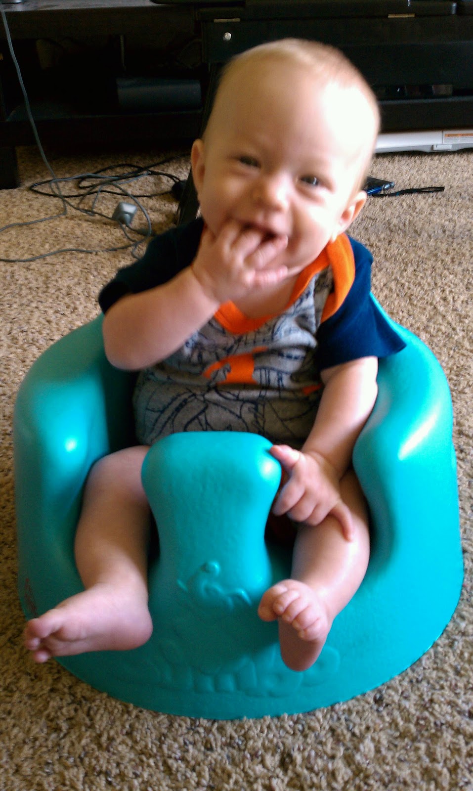 Weston sure loves his toys!!! he always falls asleep with the rings from his ducky toy in his hands when he's in his carseat ! so so cute! my mom got him a Bumbo seat and baby Einstein jumper station, he just loves sitting up and jumping around and all the colorful toys! It's so hard to believe that he is almost 5 months old, I just want to keep him in this precious stage FOREVER!!! poor boy has a lot of crying embarrassing mom moments in his future...haha but at least he'll always know he is my entire world and loved beyond measure :-)